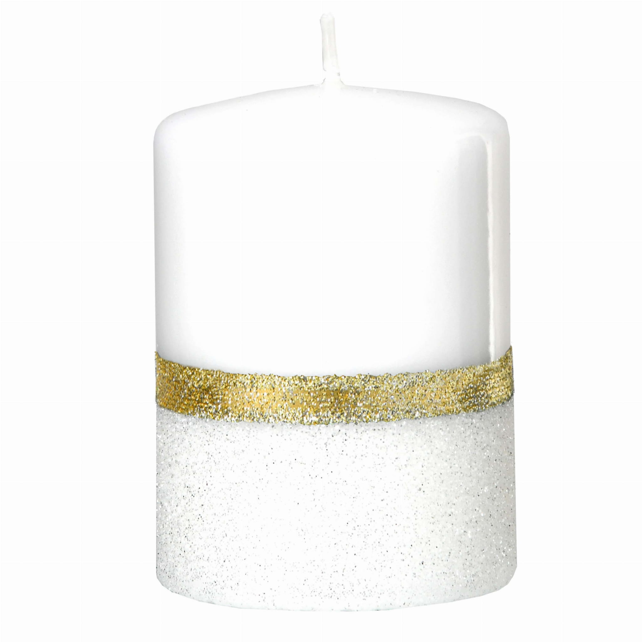Świeca ozdobna VOLARE Walec Mały biały złoty brokat