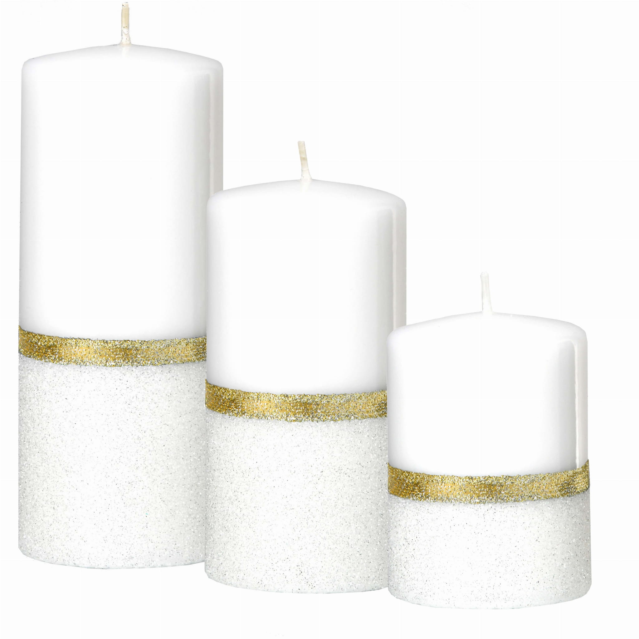 walec średnica 7/wysokość 10 cm,czas palenia 63 Hkolor biały/biały brokat/ brokat złoty