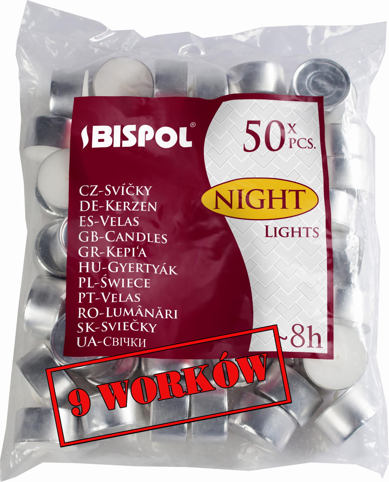 9x Podgrzewacze 50 sztuk świece tealight palenie 8he 9 opk. a'50 szt.,świeca Bispol