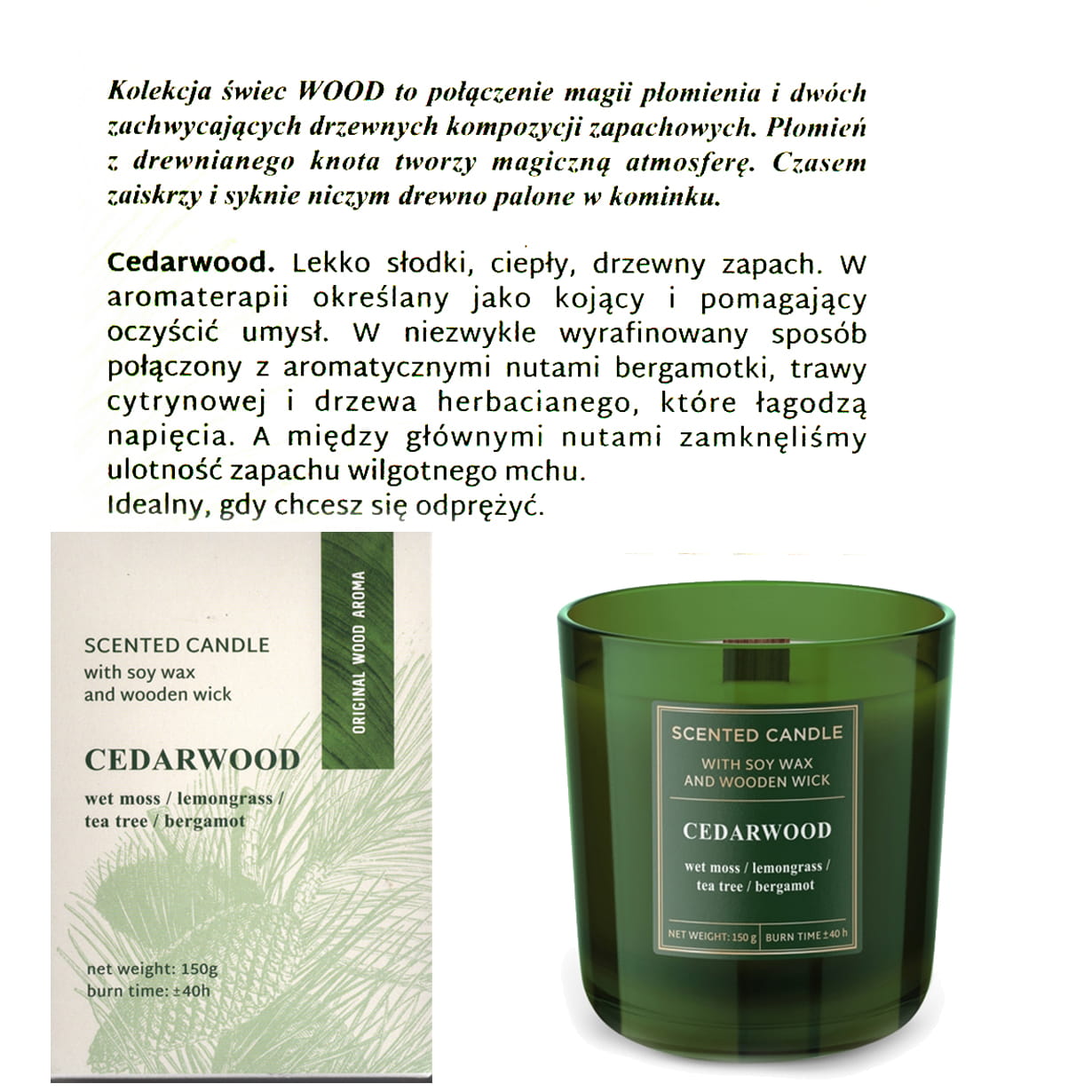 CEDRWOOD ŚWIECA ZAPACHOWA , DREWNIANY KNOT, SOJOWY WOSK