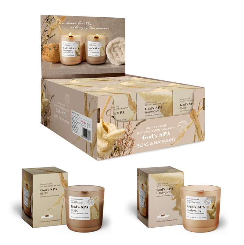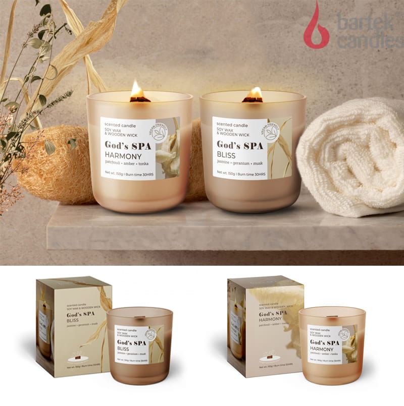 Dwie czarujące kompozycje zapachowe z kolekcji God’s SPA powstały aby ukoić zmysły i wspaniale dopełnić wieczorną kąpiel lub chwile błogiego odpoczynku. Doskonale spełnią się również jako świece dzienne roztaczając w otoczeniu niezwykle przyjemne aromaty. Wypełnione woskiem sojowym, zbliżają do natury, a płomień z drewnianego, charakterystycznie skwierczącego knota stworzy nastrojową aurę. Zwolnij, odetchnij i ciesz się chwilą