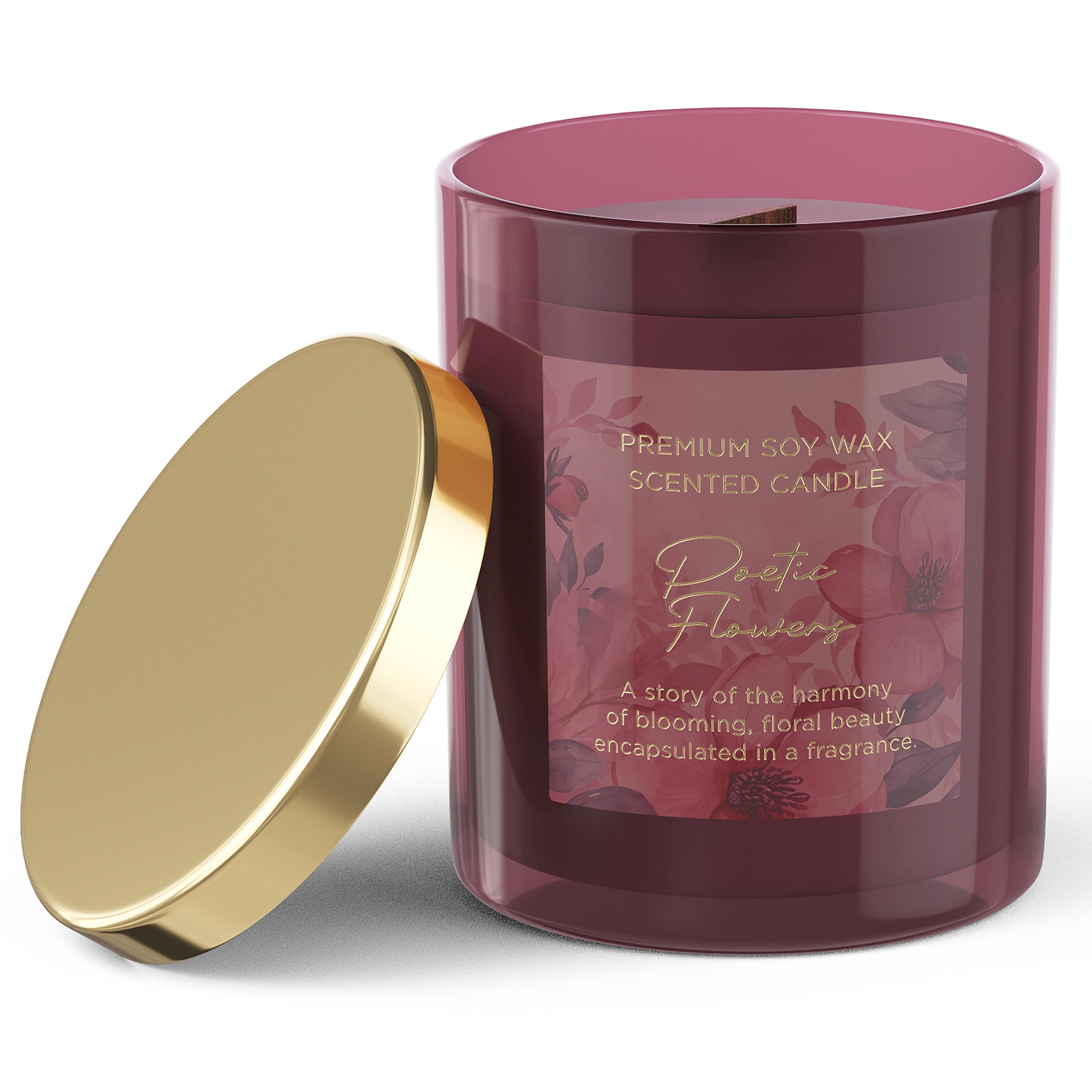 Poetic Flowers Świeca zapachowa , drewniany knot 35h 220g