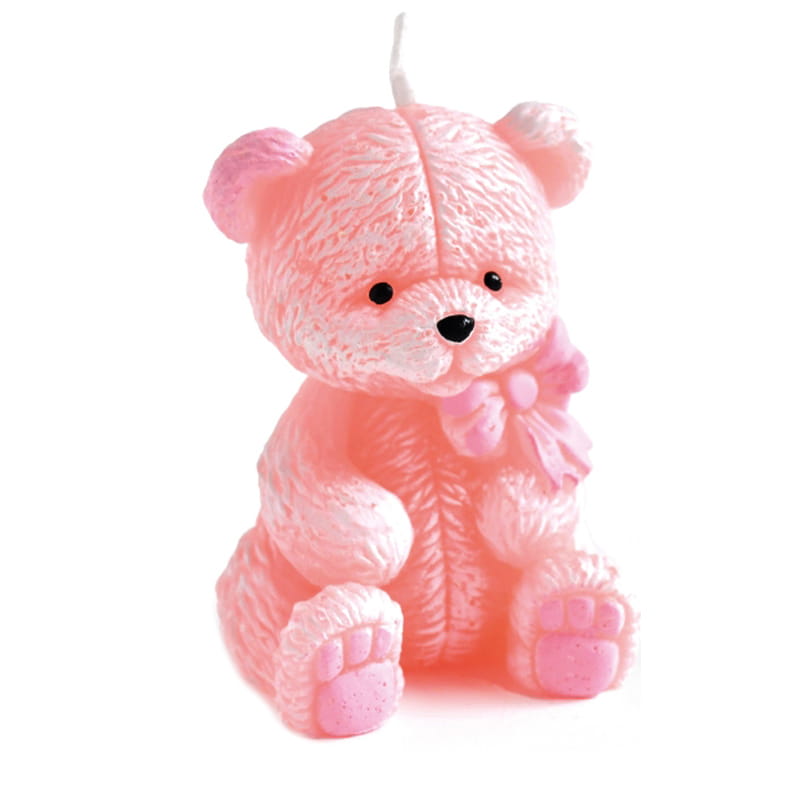 Świeca Miś świeczka figurka 7,5 cm różowy Flowerbox Chrzest Komunia