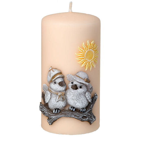 Świeca ozdobna Ptaszki Walec Średni piasek