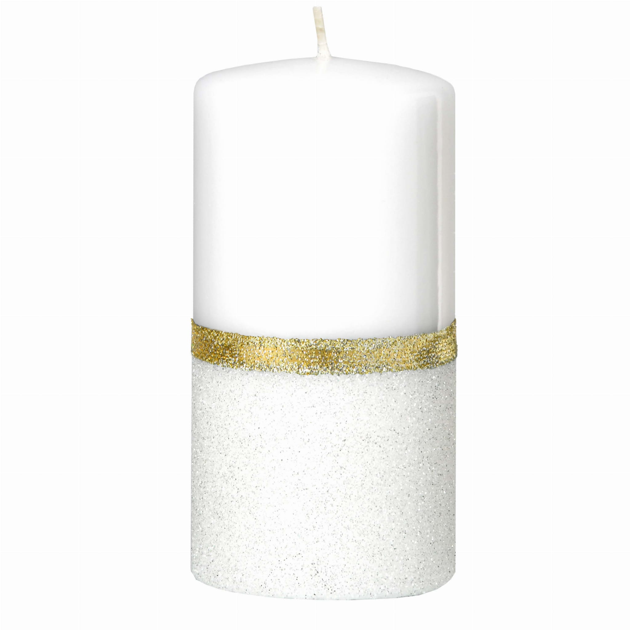 Świeca ozdobna VOLARE Walec Średni biały złoty brokat