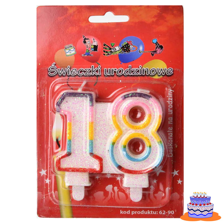 Świeczka urodzinowa cyferka w kolorze tęczowym.