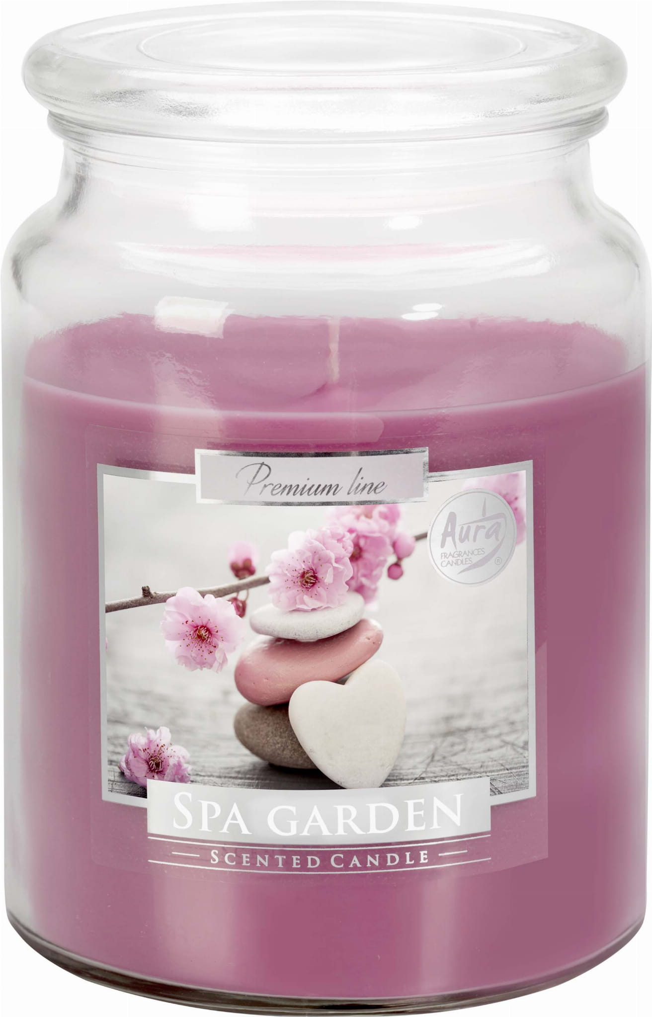 Świeca zapachowa Ogród Spa w dużym słoiku z wieczkiem, o czasie spalania 100h.