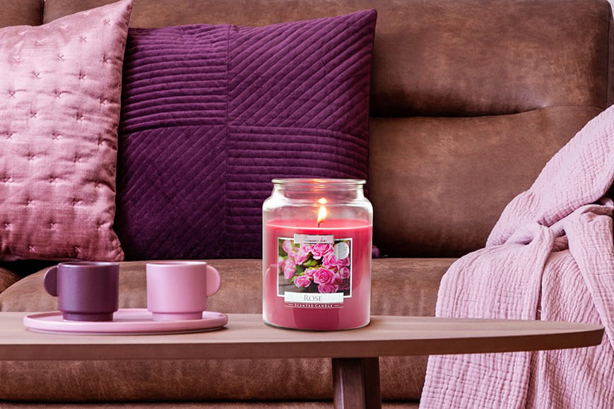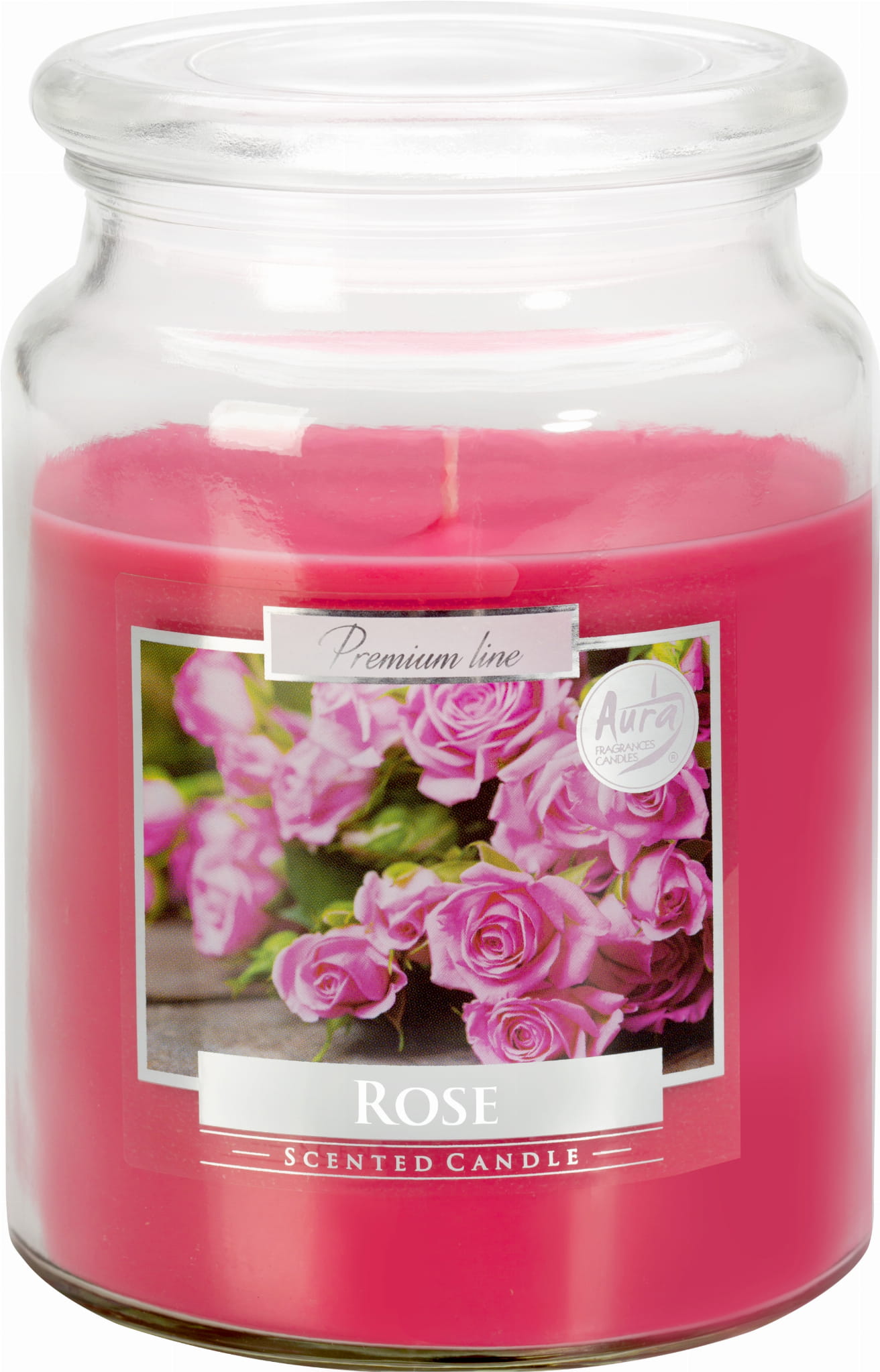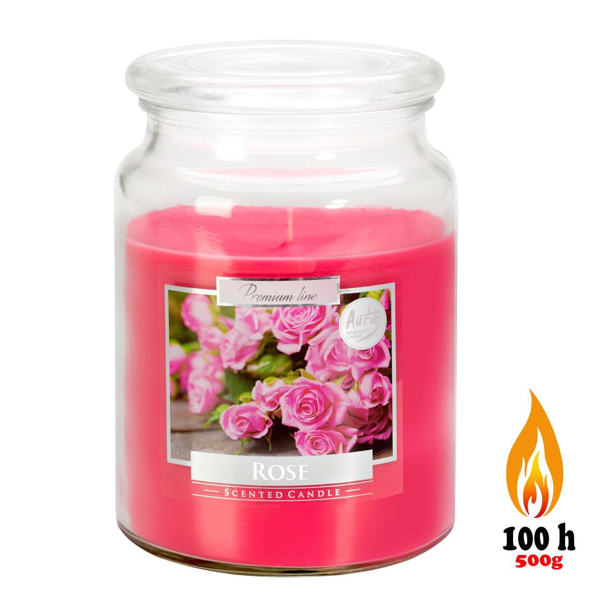 Świeca zapachowa Róża w dużym słoiku z wieczkiem, o czasie spalania 100h.